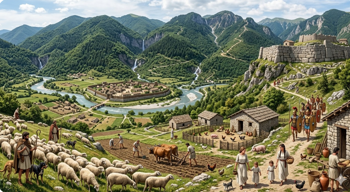 In the pre-Roman period, few urban agglomerations of notable size existed. The mountains of Samnium could not rival the metalliferous hills of Etruria, which favored the expansion of cities like Tarquinii, Caere, and Veii. It is even possible that the word "city" did not exist in the Samnite language. Samnium was a rural society, and some of its settlements likely consisted of nothing more than clusters of shepherds’ huts, similar to the case repentinae described by Varro, primarily intended for seasonal residency. This demographic setup is confirmed by ancient writers, who describe the Samnites as inhabitants of hamlets.
