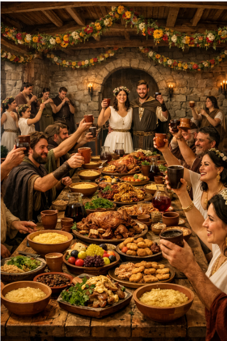 Nei banchetti nuziali degli antichi Sanniti, i piatti principali serviti riflettevano la ricchezza e la varietà della cucina dell'epoca.