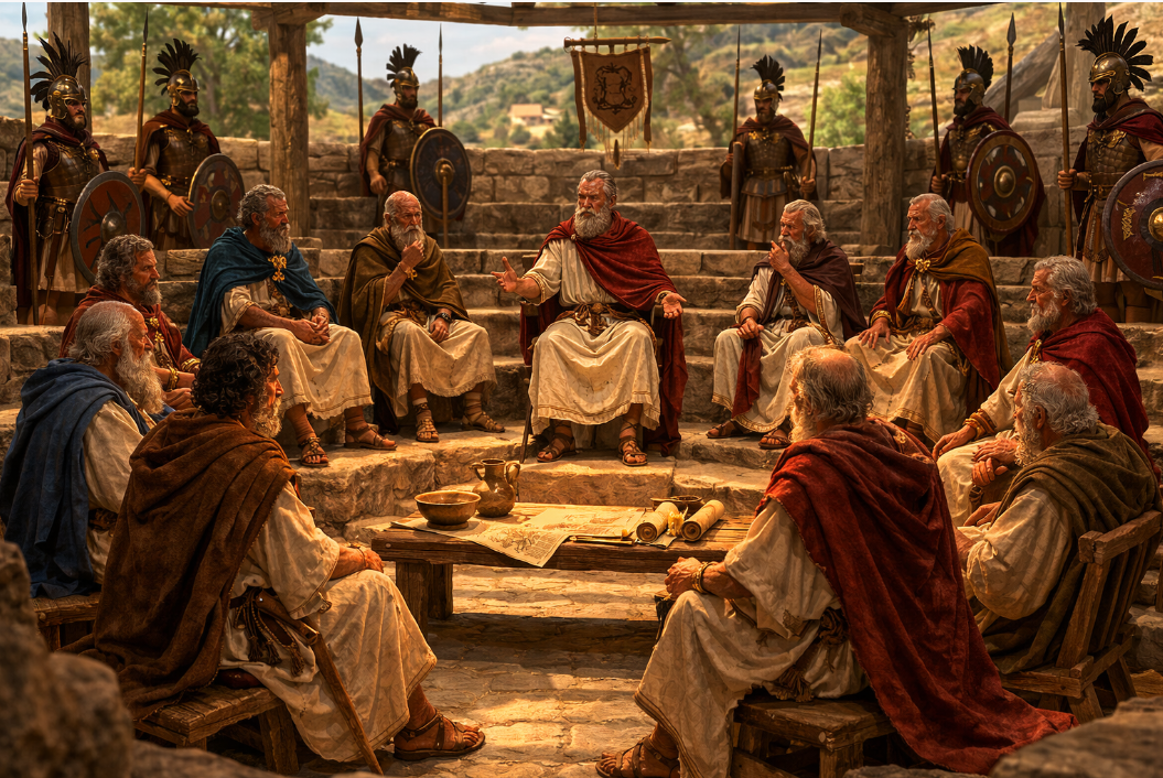 Each Samnite tribe had a council and an assembly (known as the kombennio or komparakio), which met periodically in designated locations and were convened and chaired by the meddix tuticus. Thus, the constitution of a Samnite state was “mixed”: the meddix tuticus represented the monarchical element, the council the aristocratic element, and the kombennio or komparakio the democratic element.