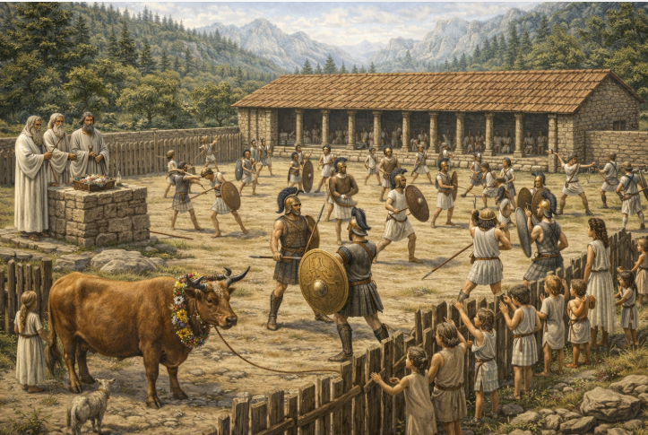 I giovani, chiamati "Guardiani della Porta", ricevevano addestramento alla vita militare, alle arti equestri e all'uso delle armi come lance, spade e scudi. Simile alla iuventus romana o all'agoghé spartana, enfatizzava disciplina, lealtà di gruppo e abilità guerriere per formare élite pronte al combattimento.