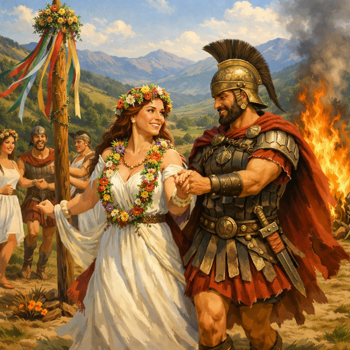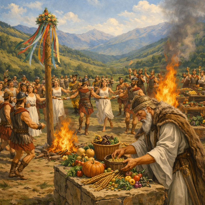 Insieme, guidavano i rituali che celebravano l'abbondanza e il corteggiamento, come l'accensione dei fuochi sacri e le danze attorno al palo di maggio. Questa unione sacra era vista come essenziale per garantire buoni raccolti e prosperità per l'anno a venire.